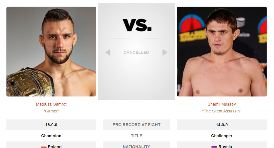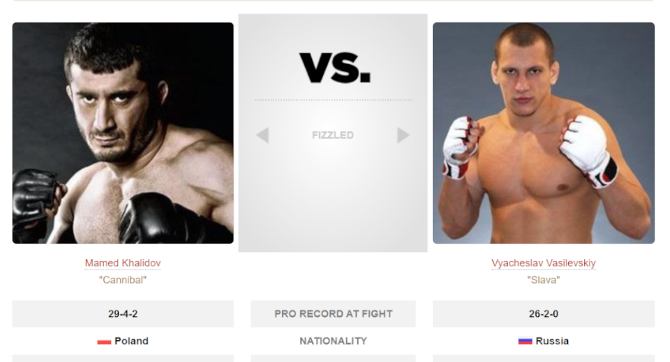 Zarówno Mamed jak i Vyacheslav przed takowym potencjalnym bojem posiadali serię aż 9 kolejnych zwycięstw z rzędu co powodowałoby naprawdę pojedynek na najwyższym poziomie. Niestety, finalnie obie strony nie dogadały się i Mamed zmierzyć miał się z Tomaszem Drwalem (22-6-1), lecz ten również wypadł i ”Caniballa” zestawiono z Brettem Cooperem (28-15).