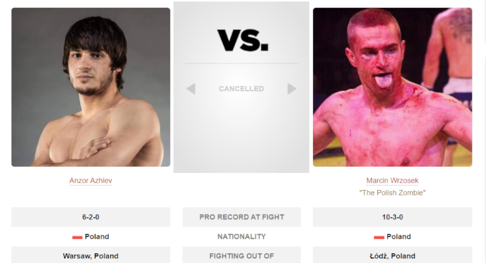 Ta walka miała potencjał na zgarnięcie BONUSU nie tylko za najlepszy bój wieczoru ale kto wie może nawet i roku. Dwóch piekielnie efektownych zawodników na jednej z ciekawszych gal KSW w 2016 roku, co mogło pójść nie tak? Oczywiście, że kontuzja… Ale do rzeczy! Na przeciwko siebie stanąć mieli nazywany jednym z największych prospektów Polskiej Sceny Anzor Azhiev (wówczas 6-2) oraz powracający po przygodzie z TUF i UFC Marcin Wrzosek (wówczas 10-3). ”Zombiak” był po bliskiej walce z Erosą, zaś Anzor po spacerku i poddaniu na Bakoceviciu. Jednak nie ma tego złego. W zastępstwo wszedł jeszcze szerzej nie znany Filip Wolański (wówczas 9-1) i sprostał zadaniu dając twardą bitkę z fighterem z Łodzi.